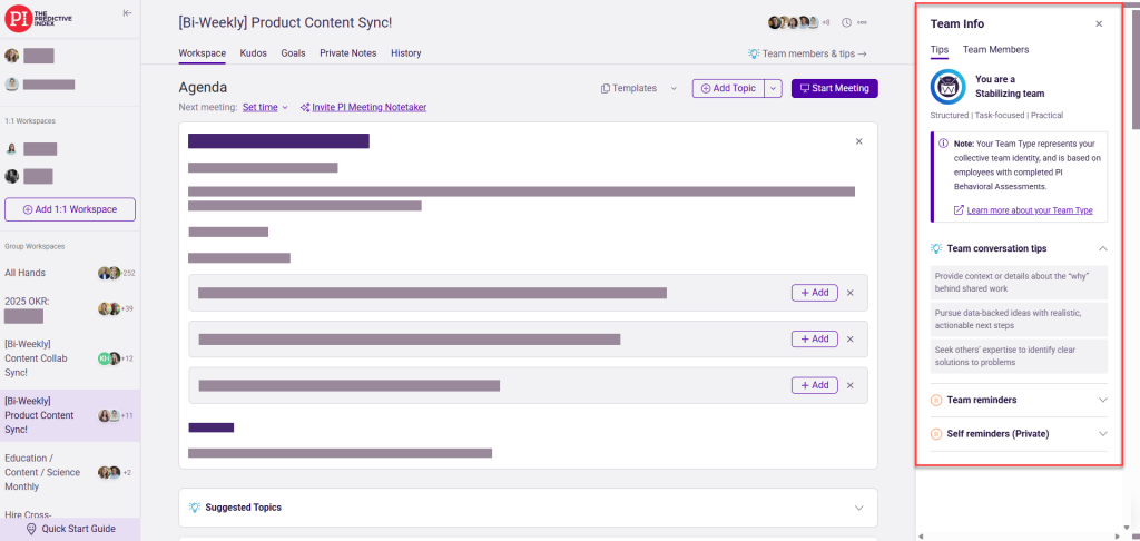 Context: In 2023, The Predictive Index acquired a meeting management software tool (then called Charma), which it then integrated into the core PI platform under a new name: PI Perform.